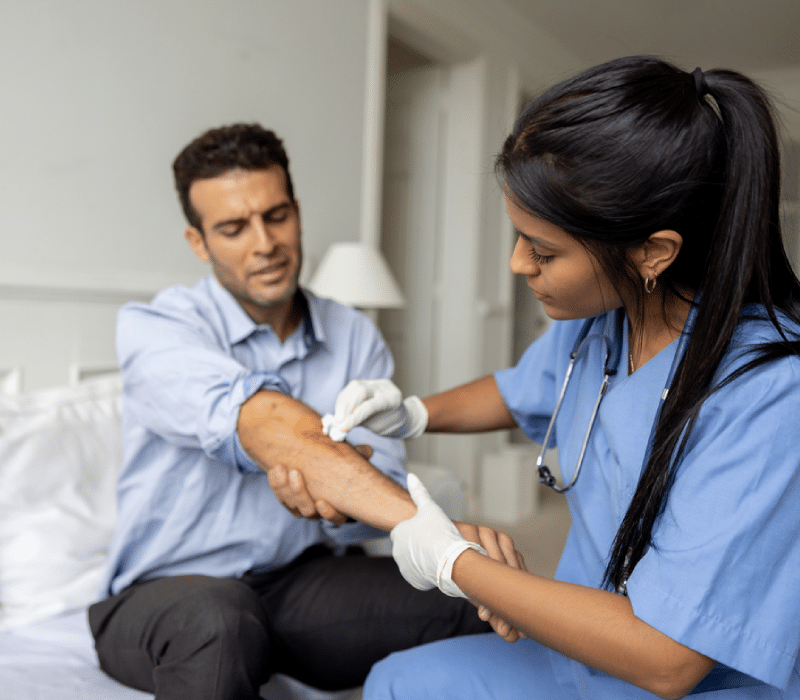 À la suite d’un accident ou après une opération, il se peut que vous ayez besoin de l’accompagnement d’une infirmière professionnelle pour soigner vos plaies. Notre rôle est de nous assurer de votre cicatrisation, de désinfecter vos plaies et de changer les pansements pour accélérer votre guérison.